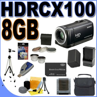 - Sony HDRCX100 (Black) 8GB Flash Memory HD Camcorder Brand New USA- 8GB PRO Duo Memory Stick (Store More Memories!) + USB PRO Duo Card Reader