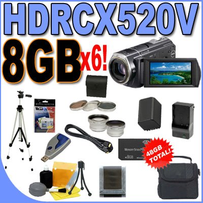 - Sony HDR-CX520V 64GB Flash High Definition Camcorder w/Full Manufacturer's Accessories- Six 8GB PRO Duo Memory Stick (Store More Memories!) + USB PRO Duo Card Reader